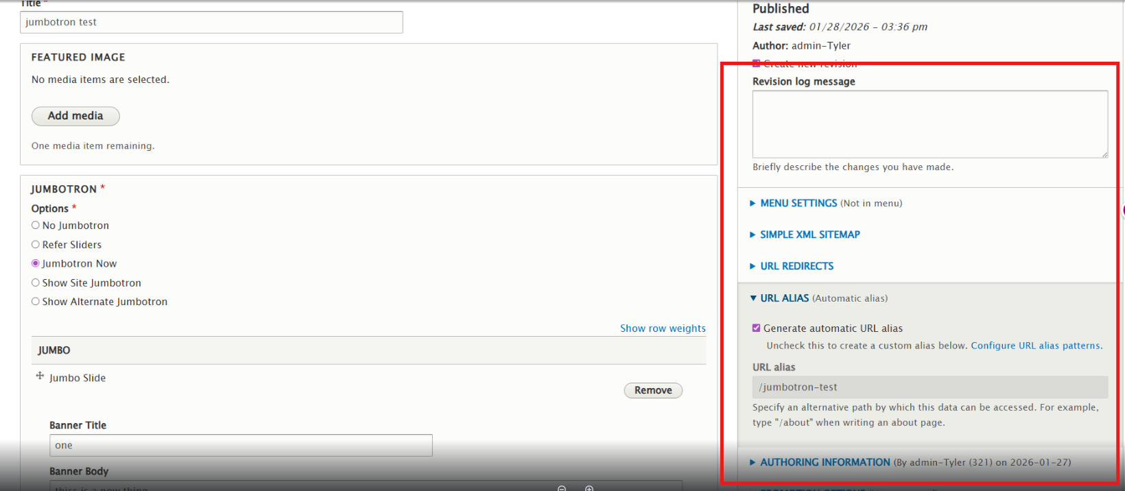 - Description of Issue: The Featured Image option was not functional in the Layout content type