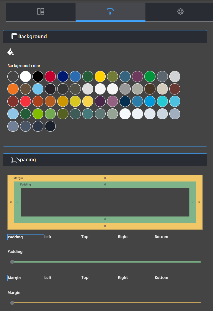 - Section wrappers: Pick from boxed, full-width (flush), or contained section widths to structure your layout